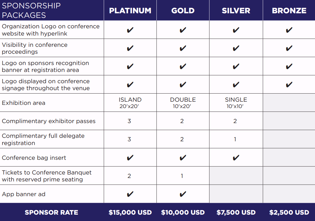 - Sponsor's banner/branding in the Poster Area for the duration of the conference.